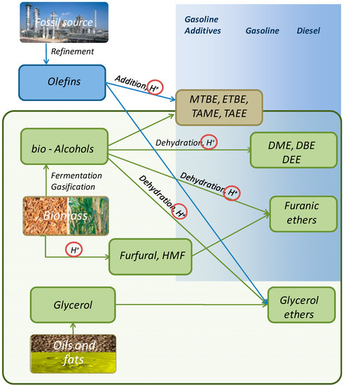 More recently, the preparation of ethers derived from biomass platform molecules, such as hydroxyl methyl furfural (HMF) and furfural, have also gained great attention due to their interesting properties in the diesel sector [11].