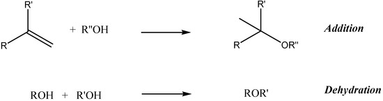 Also, in this case, the strategies for the preparation of ethers are based on the two main routes of addition of the –OH group to alkene or the dehydration of two alcohols.