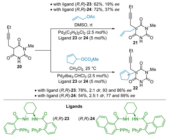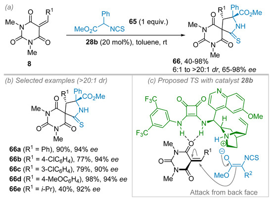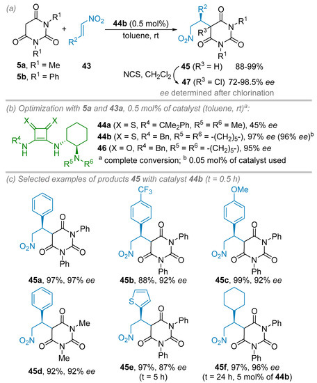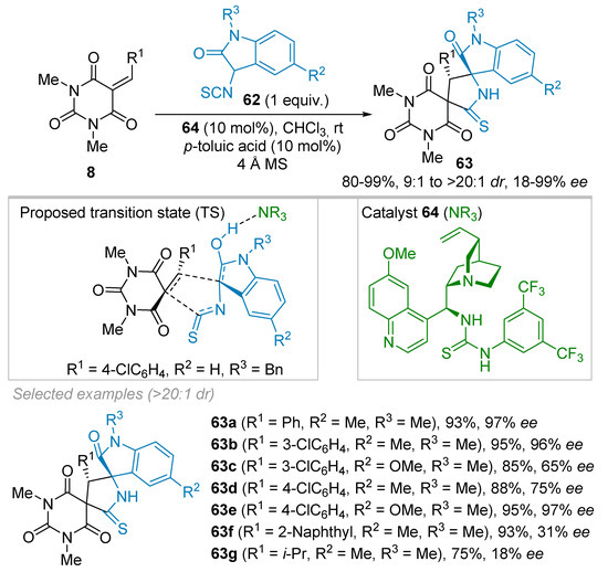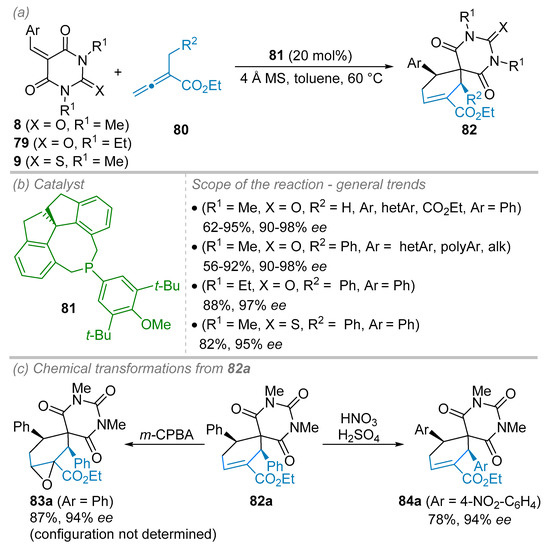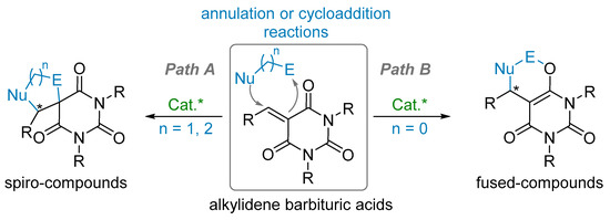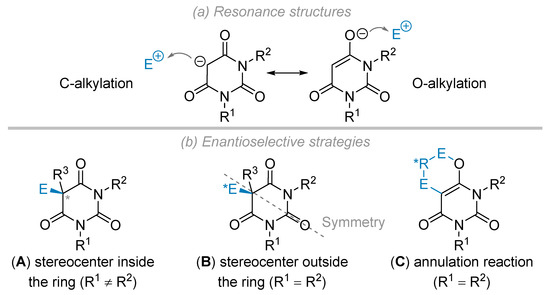 Since the beginning of the 20th century, numerous research efforts made elegant use of barbituric acid derivatives as building blocks for the elaboration of more complex and useful molecules in the field of pharmaceutical chemistry and material sciences. However, the construction of chiral