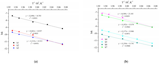Based on this mechanistic hypothesis, the reaction rate equations can be written as the sum of the homogeneous and heterogeneous-catalyzed ones, as follows: