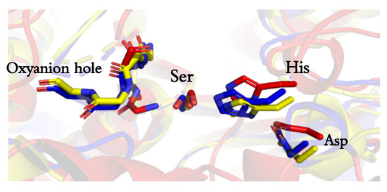 - Lenfant, N.; Hotelier, T.; Velluet, E.; Bourne, Y.; Marchot, P.; Chatonnet, A. ESTHER, the database of the α/β-hydrolase fold superfamily of proteins: tools to explore diversity of functions. Nucleic Acids Res. 2012, 41, D423–D429. [Google Scholar] [CrossRef] [PubMed]