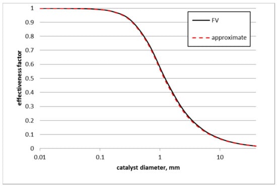 Predicted effectiveness factors with the proposed approximation as well as finite volume method are shown in Figure 7.