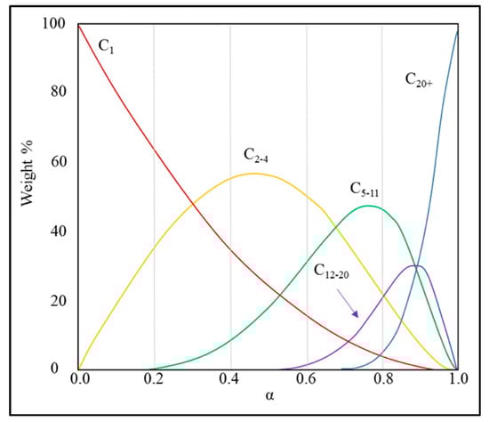 A polymerization model, as independently developed by Anderson et al. [55], Schulz [56], and Flory [57], which is known as the Anderson-Schulz-Flory (ASF) model, can describe the range of hydrocarbon products that were synthesized by FTS. The ideal FTS distribution is expressed by Equation (1), where the ASF model is the most commonly used to date: