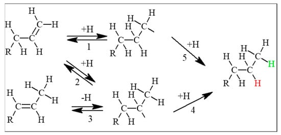 - O’Brien, B.S.R.; Davis, S.B.B.H. Mechanism of the Isomerization of 1-Alkene during Iron-Catalyzed Fischer–Tropsch Synthesis. J. Catal. 2001, 199, 202–208. [Google Scholar]