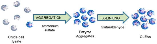 - Valesco-Lozano, S.; Lopez-Gallego, F.; Mateoes-Diaz, J.C.; Favela-Torres, E. Cross-linked enzyme aggregates (CLEA) in enzyme improvement—A review. Biocatalysis 2015, 1, 166–177. [Google Scholar] [CrossRef]