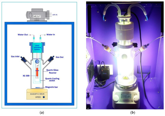 (a) Schematic and (b) photograph of the reactor used for photocatalytic H2 production.