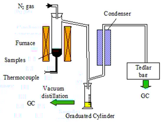 Schematic diagram of the apparatus used for the thermal or catalytic cracking process [30].