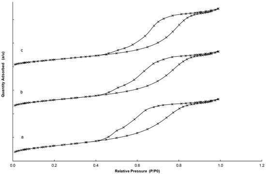 Textural properties were obtained by N2 adsorption–desorption at 77 K. Figure 1 presents the adsorption–desorption isotherms of the Ag-supported catalysts. In all the cases, the obtained isotherms were type IV according to the IUPAC classification, presenting a hysteresis cycle that is associated with the process of filling of the mesopores.
