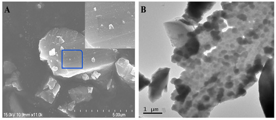 SEM (A) and TEM (B) images of MoS2/TiSi2-3.