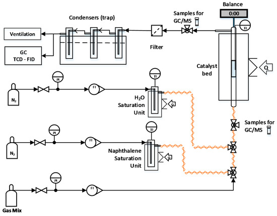 12] tested the decomposition of naphthalene over different wood char. They found that naphthalene was completely converted to carbon and hydrogen, as they did not detect other gaseous components except hydrogen using gas chromatography (GC).