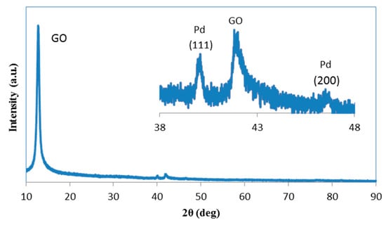 Because the interatomic distance of Pd (0.225 nm) is close to the honeycomb spacing in graphene (0.240 nm), bonding between Pd and GO is possible []. The introduction of Pd to GO resulted in a decrease in the number of oxygen functional defects, while the number of sp2 carbon atoms and delocalized π-electrons increased. The change of the GO structure led to the modification of its optical properties including photoluminescence. Further changes of the optical properties could be expected as a result of the structural changes of the Pd/GO composite under catalytic conditions, but this aspect has not been studied yet.