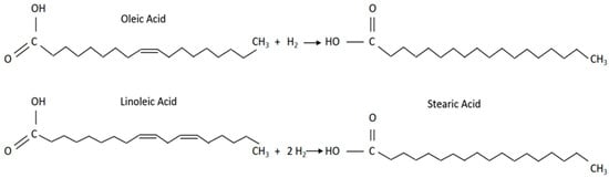 For the reaction of hydrogen with vegetable oils and vacuum gas oil, the same catalysts and the same types of reactors and equipment were used as for the oil processing [19,20]. In recent decades, efforts have been made to find the best catalysts, to optimize hydrogen reaction processes and to find suitable sources of vegetable oil or fats. A lack of resource availability and high hydrogen consumption are increasing production costs, but these shortcomings are being gradually managed commercially [21].