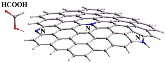 Optimized position of the formic acid molecule with respect to the N-doped graphene fragment.