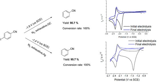 2.1. Electrochemical Reduction of 4-Iodobenzonitrile under an Inert Atmosphere