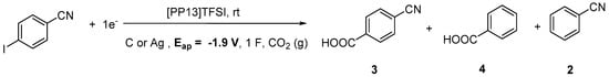 2.2. Electrochemical Reduction of 4-Iodobenzonitrile under a Carbon Dioxide (CO2) Atmosphere