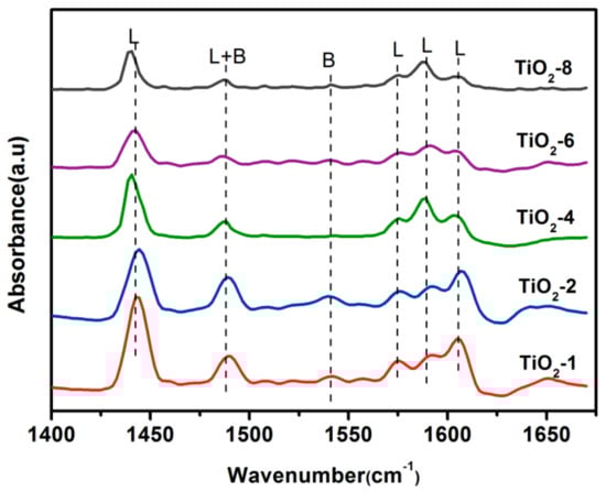 Py-FTIR spectra of TiO2 prepared by different pH values.