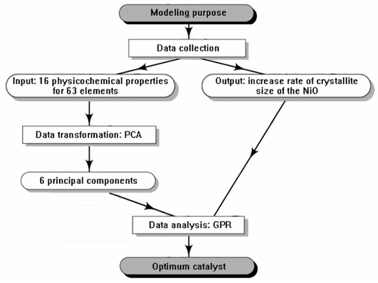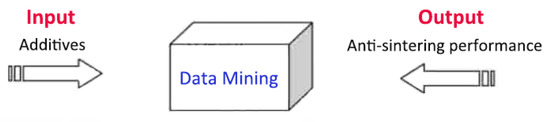 This design aims to model the relationship between the additives of Ni/Al2O3 catalyst and its anti-sintering performance through data-mining technology. The optimal additive is then predicted and screened. Therefore, when modeling, different additive elements are taken as input, and their corresponding anti-sintering properties are taken as output. The basic process and data to be collected is shown in Figure 2.