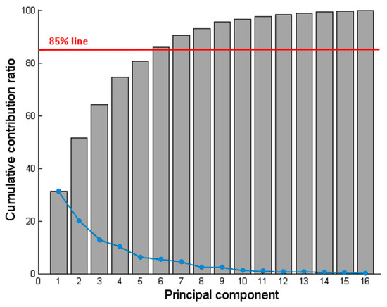 The number of input variables (16 physicochemical properties) was lessened by means of PCA. As can be seen in Figure 3, the cumulative contribution ratio versus the amount of principal component is presented.