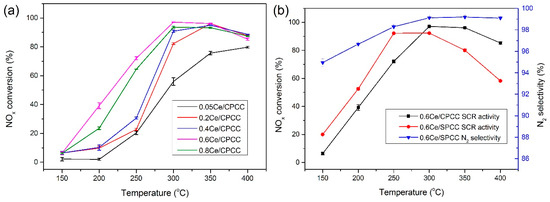 - Wang, J.; Yan, Z.; Liu, L.; Zhang, Y.; Zhang, Z.; Wang, X. Low-temperature SCR of NO with NH3 over activated semi-coke composite-supported rare earth oxides. Appl. Surf. Sci. 2014, 309, 1–10. [Google Scholar] [CrossRef]