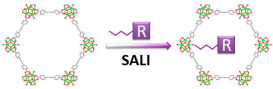 - Wang, Z.; Cohen, S.M. Postsynthetic modification of metal-organic frameworks. Chem. Soc. Rev. 2009, 38, 1315–1329. [Google Scholar] [CrossRef] [PubMed]