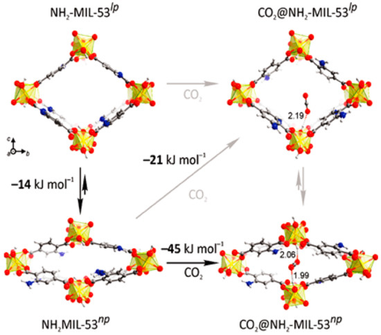 - Stavitski, E.; Pidko, E.A.; Couck, S.; Remy, T.; Hensen, E.J.M.; Weckhuysen, B.M.; Denayer, J.; Gascon, J.; Kapteijn, F. Complexity behind CO2 capture on NH2-MIL-53(Al). Langmuir 2011, 27, 3970–3976. [Google Scholar] [CrossRef] [PubMed]