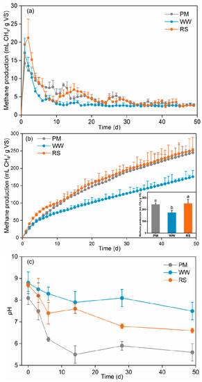 | Parameter | Inoculum | PM | WW | WW + NaOH | RS | RS + NaOH |