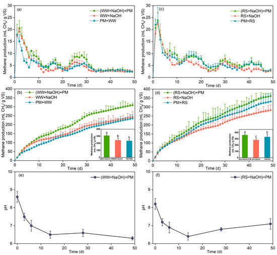 2.1. Daily and Cumulative Methane Production from Different Substrates