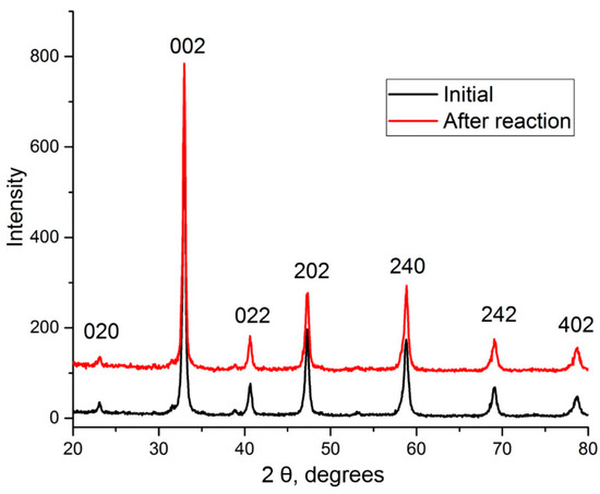 | After reaction | 0.97 | 0.76 | 0.73 | 0.26 | 0.27 | 0.35 |