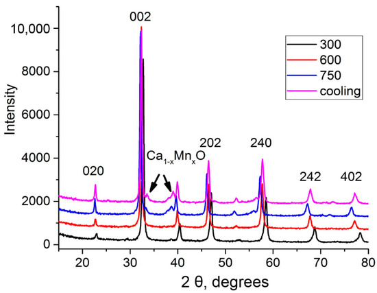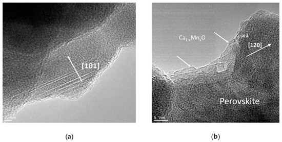 2.3. Formation Process of the Ca-Mn-O Phase on the Surface of the Perovskite in He Atmosphere