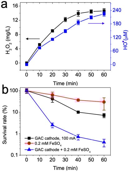 Chen, L.; Pinto, A.; Alshawabkeh, A.N. Activated Carbon as a Cathode for Water Disinfection through the Electro-Fenton Process. Catalysts 2019, 9, 601. https://doi.org/10.3390/catal9070601