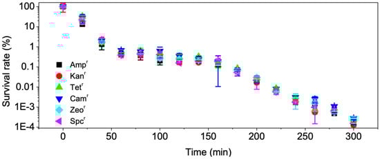2.6. Disinfection of E. coli with Antibiotic-Resistance Genes