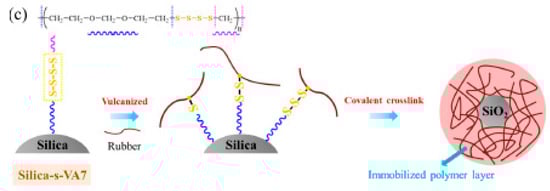 Interface reaction in SBR/silica-s-VA7 composites during the vulcanization process. Reproduced from [106].
