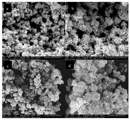 The scanning electron microscopy (SEM) images were observed on a Quanta FEG250 instrument (FEI, Houston, TX, USA) with an accelerating voltage of 10 kV. Prior to each test, catalysts were sprayed with gold for better conductivity.