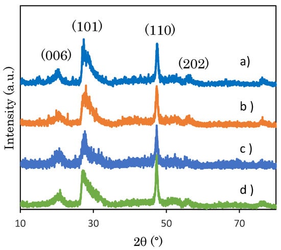 Hydrogen is one of the more demanded synthetic energy carriers. Until now, hydrogen can be produced chemically, thermochemically, biologically, biochemically, biophotochemically, etc. [,,,]. Among these techniques, hydrogen generation by water splitting using a photocatalyst has been expected as a clean and sustainable energy technology, because it can directly convert solar energy into chemical energy by using only water as a raw material [,,]. It is important to develop highly efficient photocatalysts to replace the current hydrogen generation technology with the photocatalytic water splitting process. Sunlight contains ultraviolet light, visible light and infrared light, and it is ideal to use all the wavelengths when using sunlight. It is known that the wavelength ranges of light, in which the photocatalyst reacts, is dependent on the size of the band gap of the photocatalyst [,,]. Therefore, photocatalytic activity can be exhibited even under longer wavelength light [,,]. The addition of foreign elements, which is one of the ways to change photocatalytic ability, greatly affects the characteristics of the catalyst. Specific requirements to improve the activity of the photocatalytic material generally include efficient light absorption, effective separation of photogenerated charge carriers, and better efficiency of the interface for direct release of hydrogen and/or oxygen from water [,,]. In efficient light absorption, the size of the band gap formed by the conduction band (CB) and the valence band (VB) of the semiconductor photocatalyst is the most important issue [,,]. With regard to the effective separation of photogenerated charge carriers, many elements such as defects in the crystal structure and band structure are involved in a complex manner [,,].