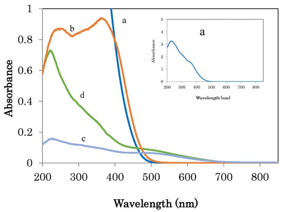 UV-visible spectra of (a) ZnIn2S4, (b) Zn0.87In2S3.87, (c) Zn0.87Cu0.13In2S3.935 and (d) Zn0.74Cu0.13In2S3.805.