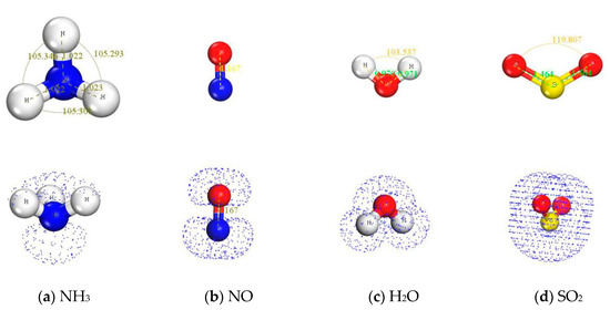 The adsorption of NH3, NO, H2O, and SO2 on the surface of various metal oxides was calculated by Materials Studio 2016 using density functional theory. Firstly, the Fukui function was calculated to predict the active site (in Figure 1).