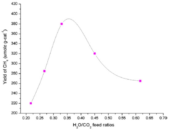 Effect of H2O/CO2 ratio over CH4 yield, reproduced with permission from reference []. Copyright Elsevier, 2013.