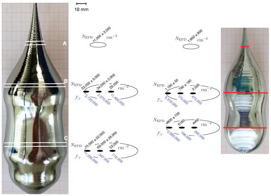Left: EPD for Case 2 ( and computed factor for the multiplication of dislocations ). The wafers A–C correspond to the cutting planes given for the crystal in Figure 3. Right: EPD for Case 1 and computed factor for the multiplication of dislocations. The cutting planes are indicated at the crystals.