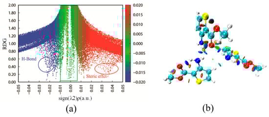 (a) The scatter graph; (b) the corresponding color-filled gradient isosurfaces map of the matc trimer structure.