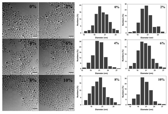 The TEM images and size distribution histogram of SrF2: Tb3+ nanoparticles.