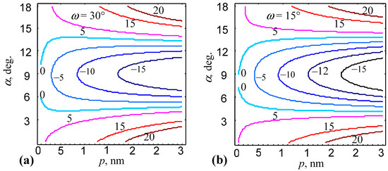 (in units of eV/nm) on the angle