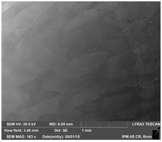 The alloy was prepared using vacuum induction melting and casting under argon into a cylindrical cast of diameter 20 mm and exploitable length of 200 mm. The nominal composition of the alloy, 25 at. % Al and 25 at. % Co, is marked in parts of isothermal sections of the ternary Fe–Al–Co diagram in Figure 2 [20]. The grains are large and have an elongated shape with a mean aspect ratio of 4:1; the mean width is approximately 250 μm, see Figure 3.