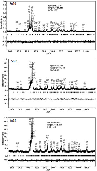 Crystallographic parameters of samples labeled as Sn10, Sn11, Sn12, and Sn13.