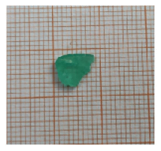 Cr4+–Li2CaGeO4 crystals were grown by the flux growth method from the flux of LiCl. The initial solution contained 70 wt% LiCl and 30 wt% Li2CaGe1−xCrxO4. The experiments were performed in platinum crucibles of 70 mm height and 70 mm diameter, and the total amount of the initial solution was 300 g. The crystallization parameters were as follows: Crystal growth temperature range of 700–900 °C. After complete melting of the raw materials, the solution was homogenized at 900 °C for 5 h and the saturation temperature of the melt was measured by the test seed crystal method; crystallization began at 5–10 °C above the saturation temperature, and then dropped to the saturation temperature after 3 h. After constant temperature growth, the drawing rate was 0.1–0.2 mm/h; the seed rotation speed was 18–22 rpm; and the growth cycle was approximately 25 days. Crystals were extracted from the liquid surface and then cooled to room temperature at a rate of 20 °C/hour to obtain crystals. Finally, the completely transparent, dark-green Cr4+–Li2CaGeO4 crystals were grown under the crystallization parameters.