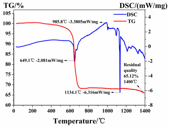 Differential scanning calorimetry (DSC)/thermogravimetry (TG) curve of Li2CaGaO4.