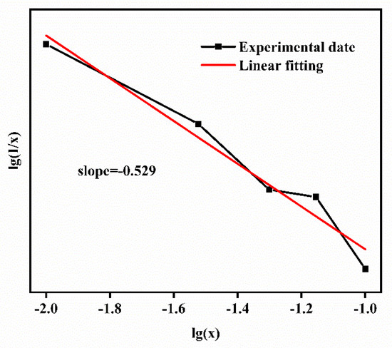 The dependence of lg(I/x) on lg(x) according to Equation (3).