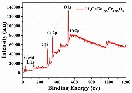 X-ray photoelectron spectroscopy (XPS) survey spectra of the Li2CaGe0.95Cr0.05O4 crystal.