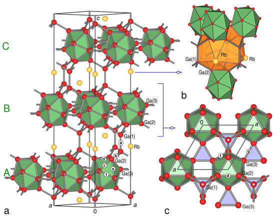 - Ling, R.G.; Belin, C. Preparation and crystal structure determination of the new intermetallic compound RbGa3. Z. Anorg. Allg. Chem. 1981, 480, 181–185. [Google Scholar] [CrossRef]