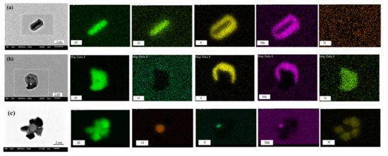 SEM images, along with elemental mappings, of typical complex MnS inclusions are shown in Figure 1. As can be seen in Figure 1a, Al and O are present in the core, while Mn and S are distributed along the periphery in the Al2O3-MnS inclusion. In the case of AlN-MnS inclusion (Figure 1b), MnS is located at the top of the AlN particle. Whereas a small portion of MnS is located between Al2O3 and AlN phases in AlON-MnS inclusions (Figure 1c).