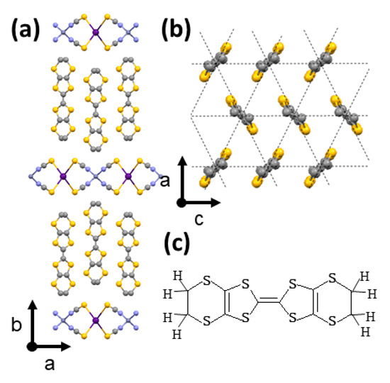- Williams, J.M.; Ferraro, J.R.; Thorn, R.J.; Carlson, K.D.; Geiser, U.; Wang, H.H.; Kini, A.M.; Whangbo, N.-H. Organic Superconductors (Including Fullerenes): Synthesis, Structure, Properties, and Theory; Prentice Hall: Englewood Cliffs, NJ, USA, 1992; pp. 92–93. [Google Scholar]